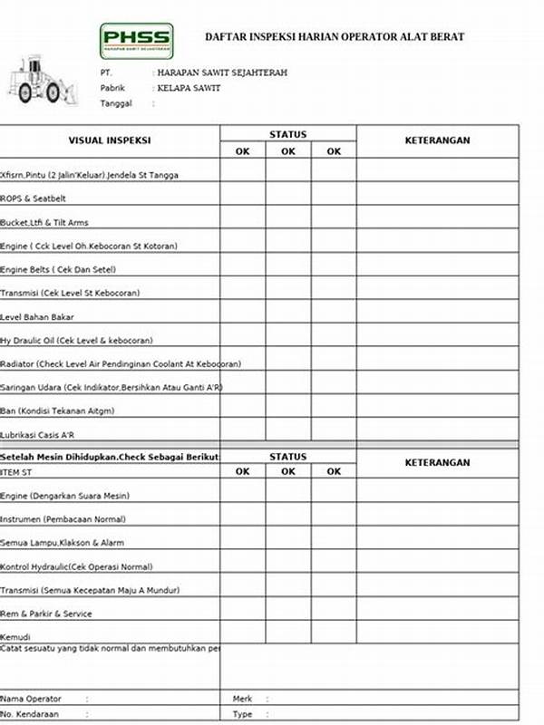Langkah inspeksi alat berat berkala itu ibarat punya asuransi buat ngelindungi investasi. Dengan rutin ngecek alat berat, umur peralatan bisa jadi lebih panjang, sama kayak lo yang rutin makan sayur biar sehat. Inspeksi berkala ngasih jaminan kalau alat selalu siap sedia saat dibutuhin tanpa bikin deg-degan.